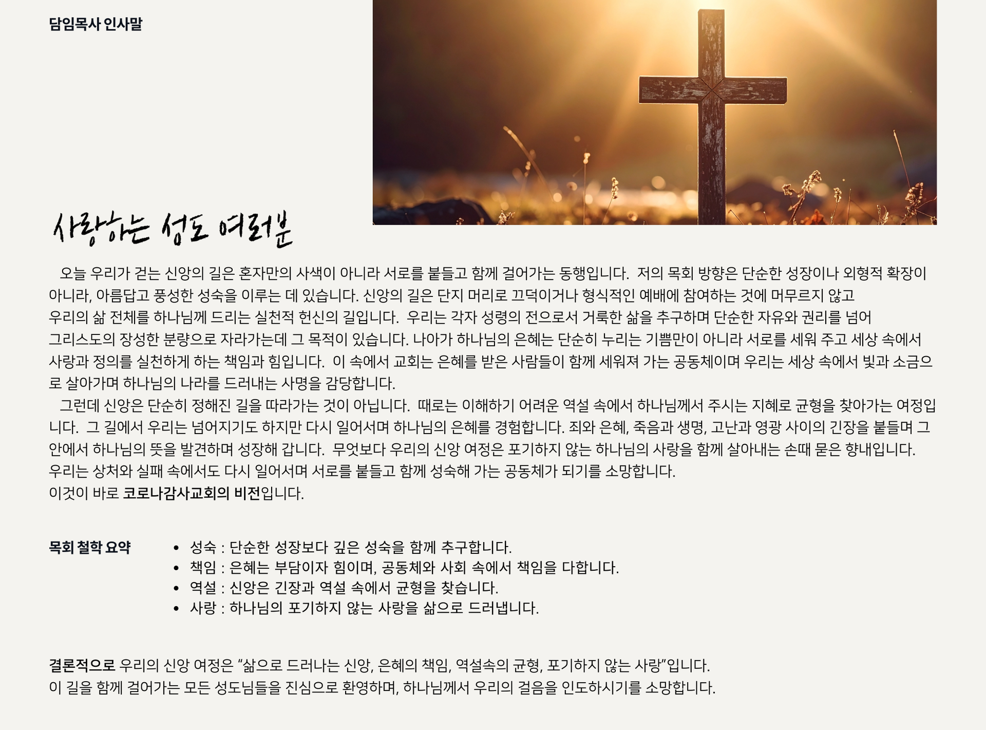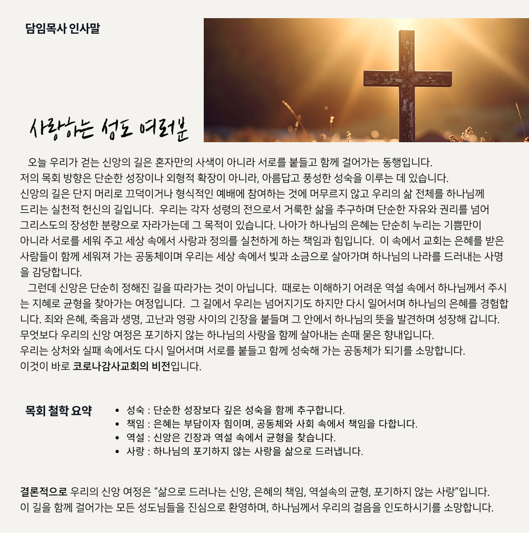 Greeting | 담임목사 인사말